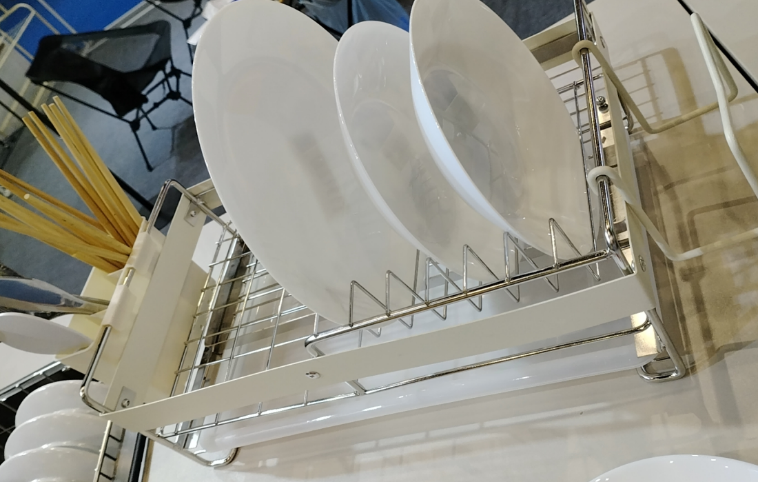 Siri Penyimpanan Dapur: Yang menonjol ialah rak pengering pinggan mangkuk boleh dipanjangkan keluli tahan karat, direka untuk kefungsian optimum dan kecekapan ruang. Siri ini juga termasuk rak yang dipasang di dinding berbilang fungsi dan pemegang pisau magnetik, semuanya direka dengan estetika minimalis yang sesuai untuk dapur moden yang padat.